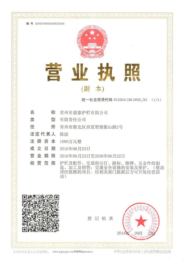 常州市盈泰護(hù)欄有限公司位于常州市新北區(qū),是國(guó)內(nèi)生產(chǎn)護(hù)欄的專(zhuān)業(yè)性企業(yè)。西靠常州機(jī)場(chǎng),滬蓉高速、京滬高速,北鄰長(zhǎng)江,水陸空交通十分便利。